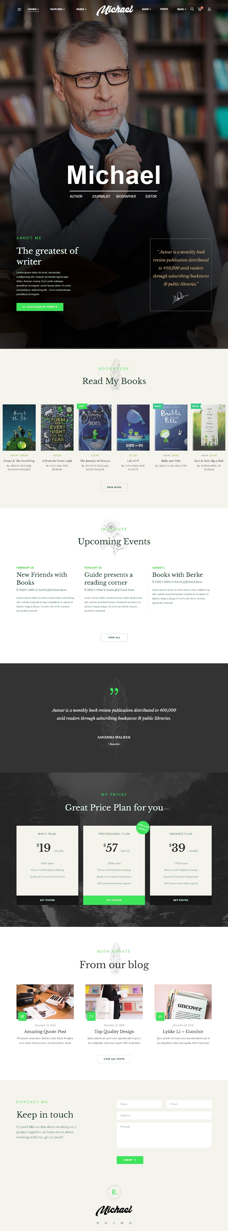 This layout is ideal for author websites and personal writer projects, offering a refined and well-structured design that showcases books, publications, and storytelling in a polished and engaging manner. It is perfectly suited for novelists, non-fiction writers, and storytellers who want to communicate their creative journey and professional achievements with ease and professionalism.