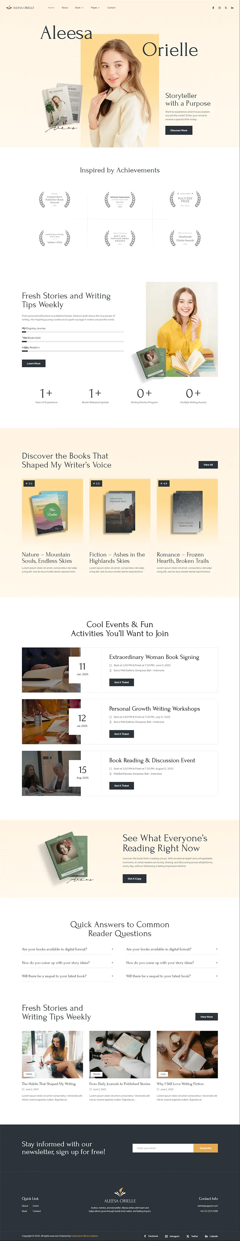 This layout fits perfectly for book author website design and writer branding websites. It supports authors who want to present their books, writing achievements, and reader trust through a professional and visually balanced design.