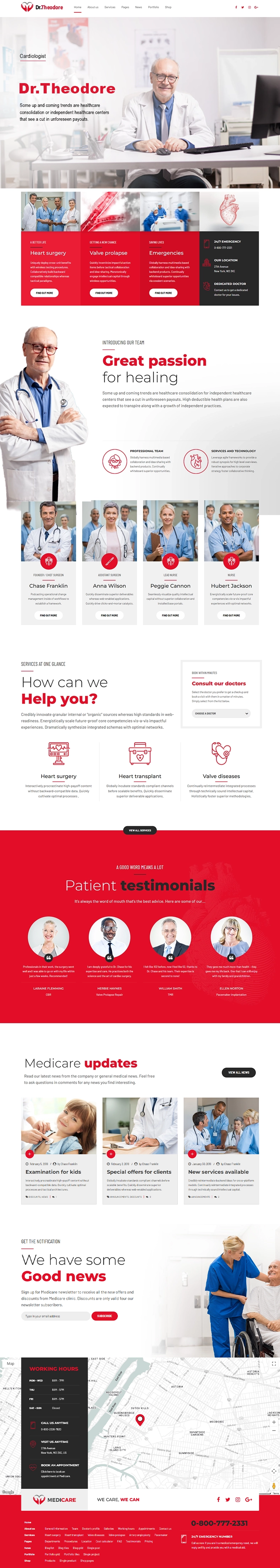 A cardiology-focused layout with sections for heart procedures, diagnostics and lifestyle education.