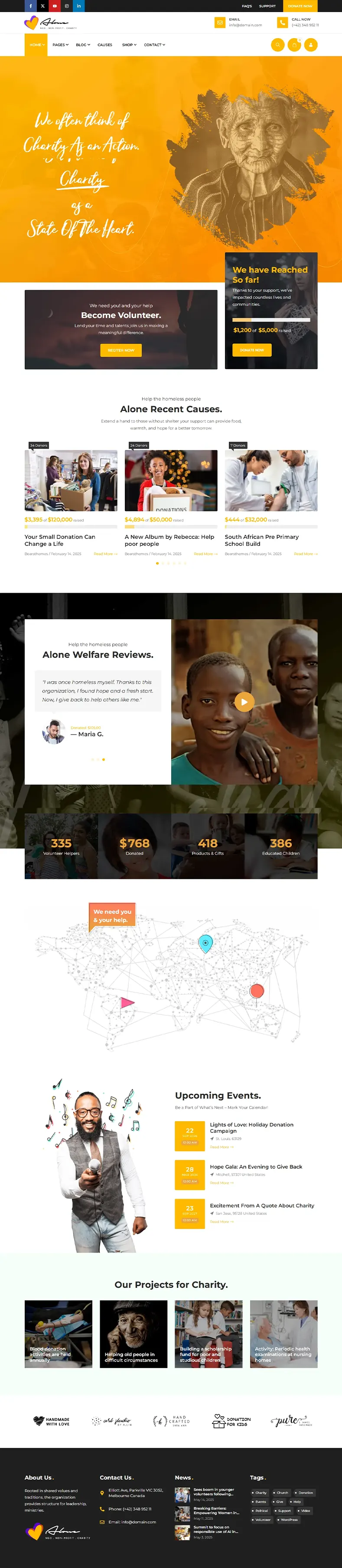 This layout is built for nonprofit organizations, foundations, and community groups looking for a flexible and professional website. It helps present mission, programs, leadership, impact stories, and organizational values clearly.