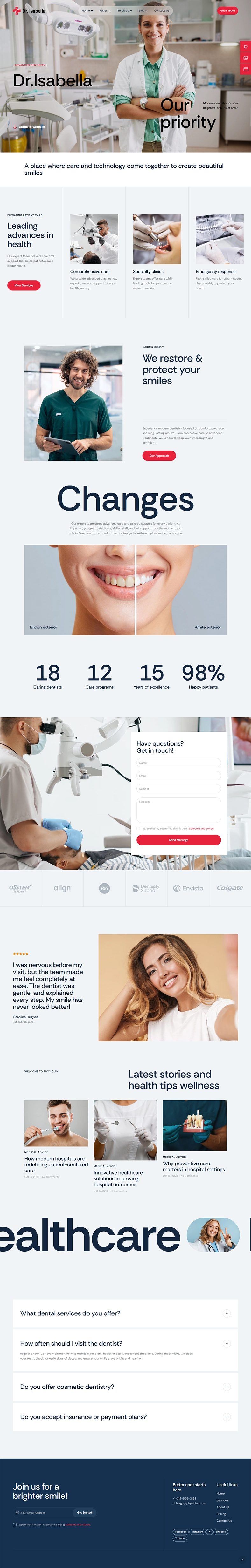 This layout is designed for orthodontists and orthodontic clinics who want a clean, modern and patient-focused website. Highlight braces options, Invisalign treatments, early orthodontic care, before-and-after cases, financing information and simple.