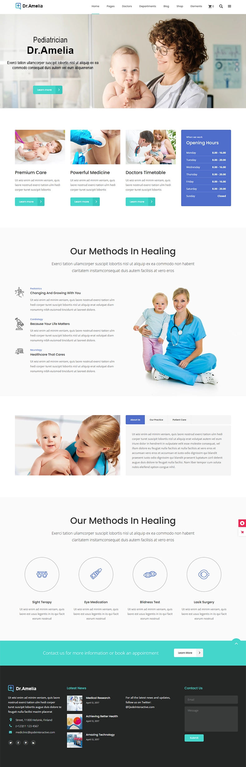 A child-friendly layout for pediatricians with wellness visits, vaccines and parent resources.