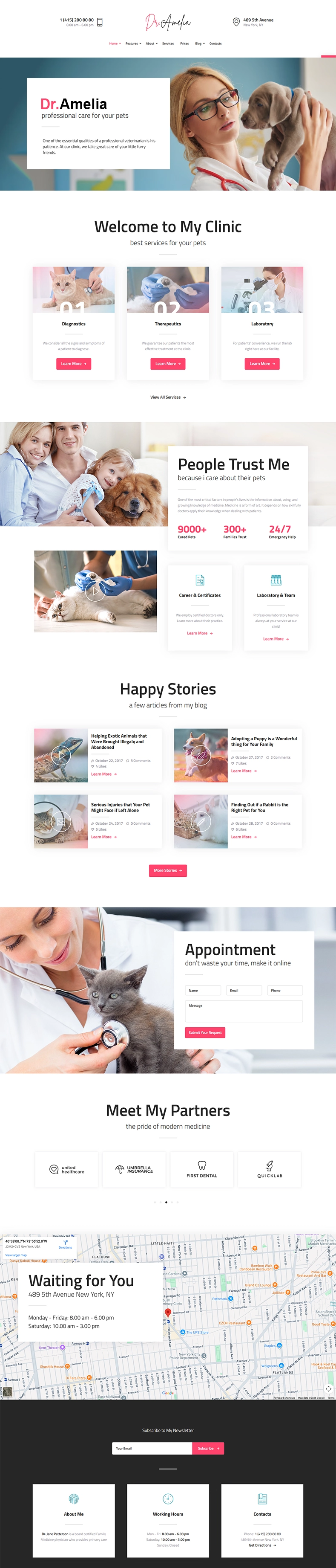 This layout is designed for veterinarians, pet clinics, and animal hospitals who want a modern, easy-to-navigate website. Showcase preventive care, surgeries, emergency services, species treated, grooming and boarding options, plus clear.